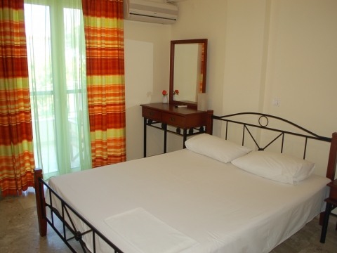 Μέσα σε ένα καταπράσινο κήπο με γκαζόν και λουλούδια βρίσκεται ένα σύγχρονο συγκρότημα 10 αυτόνομων κλιματιζόμενων διαμερισμάτων, το οποίο αποτελείται από 6 γκαρσονιέρες και 4 δυάρια. Όλα τα διαμερίσματα είναι διαμπερή με μπαλκόνι και στις δύο πλευρές και υπέροχη θέα στη θάλασσα, η οποία απέχει μόλις 70μ. Το κάθε διαμέρισμα διαθέτει πλήρως εξοπλισμένη κουζίνα (ψυγείο, ηλεκτρική εστία, σκεύη, κλπ) και τηλεόραση. Στα δυάρια μπορούν να διαμένουν με άνεση 5 άτομα, ενώ οι γκαρσονιέρες φιλοξενούν 3 άτομα. Επίσης, σε κάθε διαμέρισμα αντιστοιχεί πάρκινγκ, στον εσωτερικό χώρο του συγκροτήματος, για την ασφάλεια του αυτοκινήτου σας.