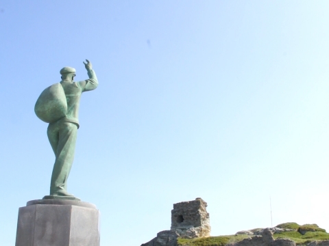 την πλατεία της Ρίβας, στο κάτω άκρο της Χώρας δεσπόζει το άγαλμα του Αφανή Ναύτη, προς τιμή όλων των ναυτικών που έχασαν την ζωή τους στη θάλασσα. Είναι έργο του Μιχαήλ Τόμπρου, δωρεά της οικογένειας Γουλανδρή. Τοποθετήθηκε στο βάθρο του στις 5 Νοεμβρίου 1959 και έμεινε ακλόνητος μέχρι τις 30 Απριλίου του 2001 όπου ένας δυνατός αέρας τον έριξε στα μάρμαρα της πλατείας. Μετά την απαραίτητη επισκευή, τοποθετήθηκε στη θέση του. Είναι άγαλμα θρύλος, πόλος έλξης επισκεπτών, σήμα κατατεθέν, κλασικός τόπος ρεμβασμού, αναμνηστικών φωτογραφιών για όλους τους επισκέπτες του νησιού.