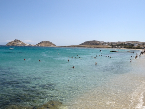 Η παραλία που προνομιακά βλέπει απέναντι την Δήλο, το ακρωτήρι της Αλεόμαντρας και το κανάλι μεταξύ Μυκόνου και Δήλου. Είναι επίσης η παραλία με το γνωστό πανηγύρι του Άη Γιαννιού, στο τέλος του Σεπτέμβρη. Η παραλία είναι αμμουδερή και συνιστάται για αυτούς που θέλουν ηρεμία και χαλάρωση στο μπάνιο τους. Είναι οργανωμένη, δεν υπάρχουν όμως θαλάσσια σπορ.