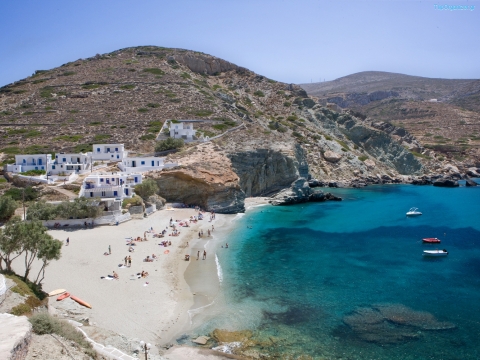 Οικογενειακή παραλία με πεντακάθαρα νερά, προσβάσιμη οδικά με λεωφορείο ή με αυτοκίνητο αλλα και με καραβάκι από τον Καραβοστάση.
