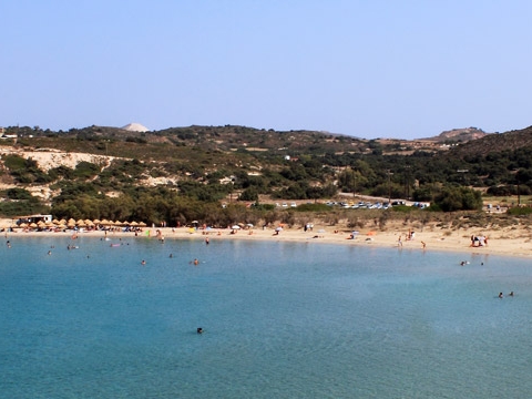 Η μεγαλύτερη παραλία του νησιού με κατάλευκη αμμουδιά και βαθυγάλανα ρηχά νερά. Εκεί υπάρχει οργανωμένο camping και η παραλία είναι προσβάσιμη και με λεωφορείο. Πήρε το όνομά της από την λιμνούλα που βρίσκεται απέναντί της και είναι γεμάτη από αχιβάδες. Η Αχιβαδόλιμνη ή Χιβαδόλιμνη χωρίζεται σε δύο αμμουδιές, η πρώτη είναι πιο ήσυχη και απομονωμένη, ενώ η δεύτερη είναι πολυσύχναστη, οργανωμένη και διαθέτει beach bar και εστιατόρια. Η παραλία αποτελεί ιδανική επιλογή για τους λάτρεις του surf και του kite-surf.