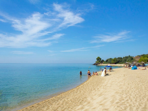 Αμμώδης παραλία, οργανωμένη η οποία διαθέτει ξενοδοχειακό συγκρότημα, εστιατόρια, μπαρ, θαλάσσια σπορ κ.ά.
