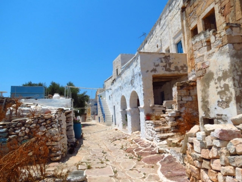 Το Μέσα Κάστρο είναι σήμερα ερειπωμένο. Το Έξω Κάστρο αποτελείται από μια σειρά σπιτιών, ο εξωτερικός τοίχος των οποίων αποτελούσε ταυτόχρονα και το τείχος, του αμυντικού στη λειτουργία του, κάστρου. Σε πολλά σπίτια υπάρχουν υπέρθυρα με οικόσημα και χρονολογίες. Ανάμεσα στις δυο σειρές σπιτιών υπήρχε δρόμος περιμετρικός, στενός τόσο που να χωράει μόνο μικρά κάρα. Το Έξω Κάστρο έχει δυο πύλες: την Κάτω Πόρτα στα νότια, στο δρόμο της Αγοράς και την Πάνω Πόρτα στην ανατολική πλευρά, δίπλα στην οποία βρίσκεται σήμερα το Λαογραφικό και Ναυτικό Μουσείο. Οι πύλες φέρουν χρονολογίες οι οποίες αφορούν επισκευή τους (1650 και 1646 αντίστοιχα), μετά από πειρατική επίθεση το 1638, οπότε το Κάστρο πυρπολήθηκε. Τότε ενισχύθηκε το Κάστρο με περισσότερους πύργους. Σήμερα στα σπίτια της εξωτερικής σειράς έχουν ανοιχτεί πόρτες και παράθυρα προς τα έξω. Στο Μέσα Κάστρο υπάρχουν 2 είσοδοι.