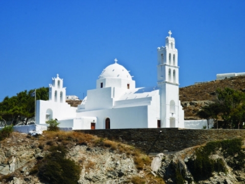 Στην Χώρα της Ίου βρίσκεται η εκκλησία της Γκρεμνιώτισσας. Είναι βυζαντινής αρχιτεκτονικής και είναι αφιερωμένη στην Κοίμηση τη Θεοτόκου. Η παράδοση μας εξηγεί γιατί οι Νιώτες έχτισαν την εκκλησία στα απόκρημνα βράχια της κορυφής του λόφου: