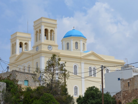 Ο μεγαλοπρεπής και επιβλητικός Μητροπολιτικός Ναός, «Παναγία η Οδηγήτρια» κτίστηκε μεταξύ των ετών 1867 και 1874 με την προσωπική εργασία όλων των κατοίκων του νησιού που, με ζήλο, δούλευαν για το μεγάλο αυτό έργο επί 7 χρόνια, αφιλοκερδώς.