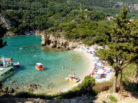 Η Παλαιοκαστρίτσα περιλαμβάνει μια περιοχή με 6 μικρούς κόλπους και παραλίες. Το νερό σε αυτήν την περιοχή είναι κρύο επειδή κατεβαίνει πιο γρήγορα και επειδή υπάρχουν κρύα ρεύματα. Η κυριότερη βρίσκεται κάτω απο το μοναστήρι και παρουσιάζει πολλές τουριστικές υποδομές επειδή είναι και η μεγαλύτερη. Μια άλλη βρίσκεται κοντά στο λιμανάκι όπου αράζουν πολλά γιοτ κατά την διάρκεια του καλοκαιριού. Στις υπόλοιπες μπορείτε να φθάσετε μόνο μέσω θαλάσσης ενοικιάζοντας βάρκες ή χρησιμοποιώντας την υπηρεσία taxi boat. Μπορείτε να ενοικιάσετε ομπρέλες και ξαπλώστρες στο μεγαλύτερο μέρος απο τις παραλίες και στην κύρια υπάρχουν ντουζ και μπάνια. Ακόμα μπορείτε να ενοικιάσετε βάρκα για να δείτε τα σπήλαια κατά μήκος αυτού του τμήματος ακτής που είναι εκείνο με την πιο θαυμάσια θάλασσα. Υπάρχουν επίσης ένα κέντρο για καταδύσεις και βάρκες που κάνουν μεταφορές πρός τις πολυάριθμες παραλίες της περιοχής.