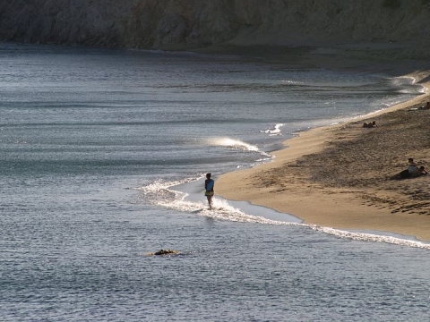 Θεωρείται η μεγαλύτερη αμμουδερή παραλία του Αιγαίου. Δίπλα υπάρχει και ταβέρνα. Βρίσκεται στα ανατολικά του λιμανιού του Άγιου Νικόλα.