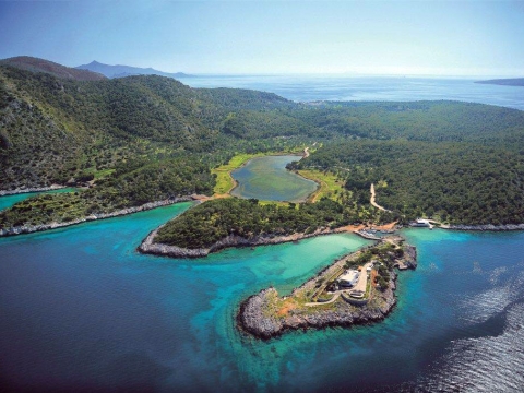 Διαθέτει καταγάλανα κρυστάλλινα νερά ανάμεσα σε φυσικούς κόλπους που δημιουργούν αμμώδεις περιοχές.