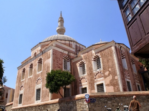 Βρίσκεται πάνω στο λόφο της Μεσαιωνικής Πόλης στην κατάληξη της οδού Σωκράτους. Το τέμενος περιλαμβάνει τρεις τετράγωνους χώρους εκ των οποίων ο ένας είναι μεγαλύτερος και ψηλότερος (15 μέτρα ύψος). Οι χώροι αυτοί είναι καλυμμένοι με τρούλους και με δύο διαδοχικά προστώα στη βορεινή πλευρά. Ανάμεσα στον κεντρικό και τον δυτικό τρούλο υψώνεται ο μιναρές ύψους 34,50 μέτρων ο οποίος διαθέτει δύο μπαλκόνια. Το μνημείο κατασκευάστηκε σύμφωνα με την παράδοση το 16ο αιώνα μ.Χ., μετά την κατάκτηση της πόλης από τον Σουλεϊμάν. Η αποκατάσταση του μνημείου βραβεύτηκε το 2006 με τιμητική διάκριση από τη EUROPA NOSTRA.