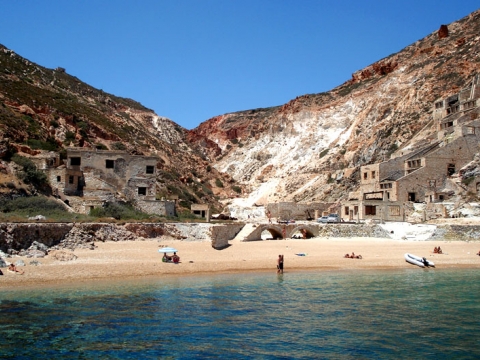 Στο Παλιόρεμα ή Θειορυχεία μπορείτε να συνδυάσετε το μπάνιο σας με ένα από τα γεωλογικά αξιοθέατα της μεταλλευτικής ιστορίας του νησιού. Μπορείτε να κάτσετε στην παραλία με τα χρωματιστά βότσαλα και την όμορφη αμμουδιά, ενώ παράλληλα να απολαμβάνεται το κολύμπι σας με θέα τα παλιά λατομεία εξαγωγής θείου και τα ερείπια από τις εγκαταστάσεις του εργοστασίου. Βαγόνια μεταφοράς με τις ράγες του, εργαλεία σκουριασμένα, ερείπια γραφείων, ανταλλακτικά και προσωπικά αντικείμενα των εργαζομένων του λατομείου, δημιουργούν ένα γοητευτικό τοπίο.