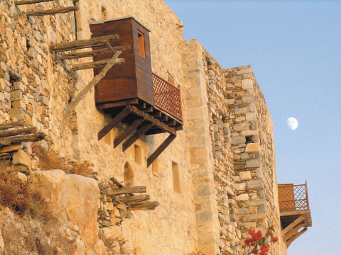 Το Βενετσιάνικο Κάστρο των Quirini, με οικόσημο της οικογένειας. Αρχιτεκτονικά ανήκει στον τύπο οχυρωμένου οικισμού, όπου οι εξωτερικοί τοίχοι των σπιτιών δημιουργούν τείχος με μικρά παράθυρα για πολεμίστρες. Τα σπίτια των Quirini είναι χτισμένα γύρω από την είσοδο, στην ανατολική πλευρά, διώροφα και έως το 1956 ήταν όλα κατοικημένα.