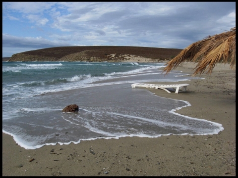 Η ψιλή λευκή άμμος, τα πεντακάθαρα, γαλαζοπράσινα και ήρεμα νερά της, την καθιστούν μία από τις δημοφιλέστερες παραλίες του νησιού. Διαθέτει ρηχά νερά κατάλληλα και για οικογένειες με μικρά παιδιά. Το μήκος της, φτάνει τα 350 μέτρα. Αρκετά δέντρα για σκιά, ομπρέλες, ξαπλώστρες, εξοπλισμένο beach bar, θαλάσσια σπορ και ταβερνούλες για φαγητό και γήπεδο beach volley, βρίσκονται ανάμεσα στις παροχές. Ένας καλός χωματόδρομος 4 χιλιομέτρων από το χωριό Παναγιά, θα σας οδηγήσει στην παραλία.