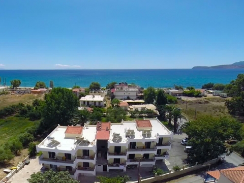 Μέσα σε ένα καταπράσινο κήπο με γκαζόν και λουλούδια βρίσκεται ένα σύγχρονο συγκρότημα 10 αυτόνομων κλιματιζόμενων διαμερισμάτων, το οποίο αποτελείται από 6 γκαρσονιέρες και 4 δυάρια. Όλα τα διαμερίσματα είναι διαμπερή με μπαλκόνι και στις δύο πλευρές και υπέροχη θέα στη θάλασσα, η οποία απέχει μόλις 70μ. Το κάθε διαμέρισμα διαθέτει πλήρως εξοπλισμένη κουζίνα (ψυγείο, ηλεκτρική εστία, σκεύη, κλπ) και τηλεόραση. Στα δυάρια μπορούν να διαμένουν με άνεση 5 άτομα, ενώ οι γκαρσονιέρες φιλοξενούν 3 άτομα. Επίσης, σε κάθε διαμέρισμα αντιστοιχεί πάρκινγκ, στον εσωτερικό χώρο του συγκροτήματος, για την ασφάλεια του αυτοκινήτου σας.