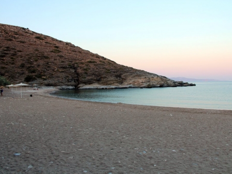 Παραλία με παχιά άμμο, ψιλό βότσαλο, σκιά από λίγα αρμυρίκια κι έναν μικρό μόλο. Είναι δημοφιλής λόγω του νέου δρόμου που διανοίχθηκε ως εκεί. Λειτουργεί ταβέρνα. Η βραχονησίδα στ’ ανοιχτά της παραλίας ονομάζεται Αβολάδα.