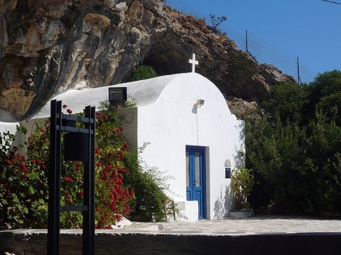 Όπως υποδεικνύει η ονομασία του, το εκκλησάκι του Άη Γιάννη βρίσκεται στην είσοδο του σπηλαίου της Αντιπάρου. Έχει δώσει το όνομά του σε ολόκληρη την τοποθεσία, η οποία ονομάζεται "βουνάλι του Άη Γιάννη" ή "Αγιογιαννίτικο βουνό". Επικοινωνεί εσωτερικά με το μικρότερο και παλαιότερο εκκλησάκι (350 ετών) της Ζωοδόχου Πηγής.