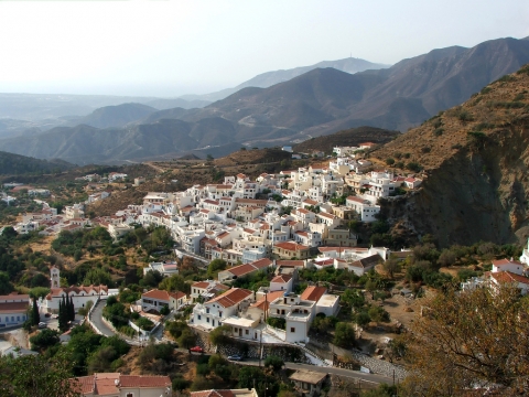 Σε απόσταση 8 χλμ. βορειοδυτικά της πόλης, κρυμμένο πίσω από τους ψηλούς ορεινούς όγκους της Καρπάθου, για να μην το παίρνει το μάτι των πειρατών, είναι χτισμένο το Απέρι, το οποίο αποτελούσε την πρωτεύουσα του νησιού μέχρι το 1892. Πρόκειται για παραδοσιακό χωριό με λίγα μαγαζάκια,καφενεία και ταβέρνες. Η γραφικότητά του, η πλούσια βλάστηση και το ρέμα που χωρίζει το χωριό στα δύο, το τοποθετούν ανάμεσα στα πιο όμορφα χωριά της Καρπάθου. Τα παλιά αρχοντόσπιτα προσπαθούν να διατηρήσουν την παλιά τους δόξα αλλά τα περισσότερα απ’ αυτά είναι ακατοίκητα ή χρησιμοποιούνται ως εξοχικά. Στην κορυφή του βουνού έξω από το χωριό βρίσκεται η αρχαία ακρόπολη της Καρπάθου, το Κοράκι.