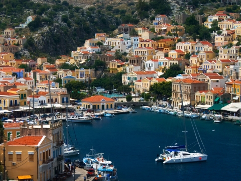 Πλησιάζοντας στο Γιαλό αντικρίζουμε ατόφια τη φυσιογνωμία της Σύμης. Η Σύμη διατήρησε το νεοκλασικό χαρακτήρα της αρχιτεκτονικής. Γι’ αυτό κι ανακηρύχθηκε ιστορικός διατηρητέος οικισμός. Τα σπίτια της, δίπατα και τρίπατα, με κεραμιδένιες στέγες και μπαλκονάκια με λιτές σιδεριές έχουν ως χαρακτηριστικό στοιχείο, το χρώμα της ώχρας και τα καφετιά παράθυρα.