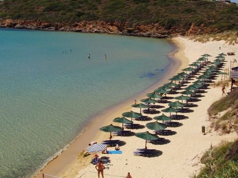 Από τις πιο δημοφιλείς παραλίες της Άνδρου και όχι άδικα. Πλατιά και ρηχή παραλία με ψιλή ξανθή άμμο, χαρακτηριστικό που της έδωσε και το όνομά της. Βρίσκεται στη βορειοδυτική ακτή του νησιού.