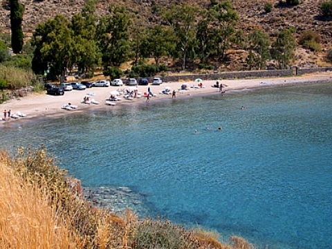Βρίσκεται στη νότια πλευρά του νησιού, σε έναν κολπίσκο με καθαρά νερά. Παραλία με άμμο και βότσαλα.