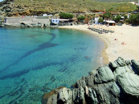 Στο βορειότερο σημείο της Τήνου, η παραλία της Κολυμπήθρας χωρίζεται ουσιαστικά σε δύο τμήματα. Το μικρότερο τμήμα από τα δύο προστατεύεται φυσικά από τους βοριάδες και για αυτό είναι πιο δημοφιλές. Η παραλία είναι οργανωμένη με ομπρέλες, ξαπλώστρες, beach bar και ταβέρνες.