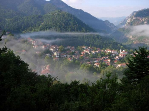 Ο παραδοσιακός, πέτρινος αυτός οικισμός και ένα από τα ομορφότερα χωριά της Ευρυτανίας. Πετρόκτιστα καλοσυντηρημένα σπίτια, λιθόστρωτα σοκάκια, μια αναλλοίωτη ταυτότητα που άντεξε στο χρόνο. Η ονομασία του χωριού προέρχεται από την αρχαία λέξη ''κόρυς'' δηλαδή περικεφαλαία και πιθανολογείται ότι κατά την αρχαιότητα κατασκεύαζαν στην τοποθεσία ''Καμίνια'' όπλα.