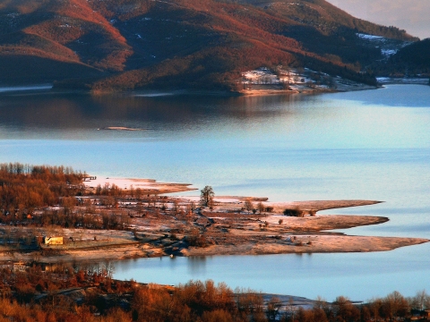 Περιέχει 400 εκατ. κυβικά μέτρα νερού, έχει μέγιστο μήκος 12 km, μέγιστο πλάτος 4 km, η συνολική της επιφάνεια είναι 24 km2, ενώ το μέγιστο βάθος της είναι γύρω στα 60 m και το ανώτατο υψόμετρο της είναι 750 m. Το νερό της χρησιμοποιείται για άρδευση και ηλεκτροπαραγωγή, καθώς εκεί κοντά, στο χωριό Μητρόπολη, βρίσκεται και υδροηλεκτρικό εργοστάσιο ισχύος 129,9MWatt. Τα τελευταία χρόνια έχει αξιοποιηθεί και τουριστικά, με αρκετές δραστηριότητες πάνω και γύρω από τη λίμνη.