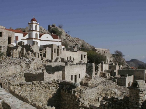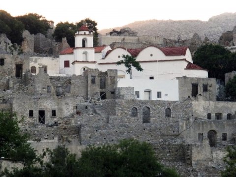 Ενα χωριό-φάντασμα βρίσκεται παραπλεύρως του κεντρικού δρόμου που ενώνει το Μεγάλο Χωριό με τα Λιβάδια, λίγο πριν τα δεύτερα. Προπολεμικά το Μικρό Χωριό δεν ήταν καθόλου μικρό, καθώς είχε πάνω από 750 μόνιμους κάτοικους. Τους μείωσε σταδιακά η μετανάστευση σε Ρόδο, Αθήνα, Αυστραλία και Αμερική και το γεγονός ότι όσοι απέμειναν άρχισαν να μετακινούνται στα Λιβάδια. Από τα 220 σπίτια του οικισμού σώζονται οι τοίχοι αλλά όχι οι στέγες και τα κουφώματα καθώς οι μετεγκατασταθέντες τα πήραν μαζί τους για να τα χρησιμοποιήσουν. Στην κορυφή του λόφου υπάρχουν τα ερείπια ενός μεσαιωνικού πύργου και αν ανεβείτε ως εκεί θα θαυμάσετε από ψηλά τη ρυμοτομία του οικισμού. Η αμφιθεατρική διάταξη των μονόχωρων κατοικιών και το δίκτυο των δρόμων φανερώνει ότι οργανώθηκε σε ενιαίο οικιστικό σύνολο πιθανότατα από τους Ιωαννίτες Ιππότες τον 15ο αι.