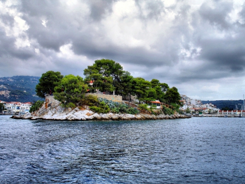 Το Μπούρτζι είναι μια μικρή χερσόνησος, η οποία χωρίζει στα δύο το λιμάνι της Σκιάθου και κατά το παρελθόν ήταν φρούριο. Το φρούριο ιδρύθηκε από τους αδελφούς Γκίζι, οι οποίοι κατέλαβαν τη Σκίαθο το 1207. Ήταν περιτειχισμένο με επάλξεις και πολεμίστρες και δεξιά και αριστερά της πύλης είχε δύο στρογγυλούς πύργους. Το ύψος του τείχους όμως, είναι αδύνατον να προσδιοριστεί από τα σημερινά απομεινάρια του.