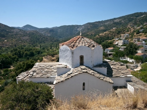 Πρόκειται για ένα από τα σημαντικότερα μεσοβυζαντινά μνημεία της Ικαρίας, χτισμένο πάνω σε ερείπια παλαιοχριστιανικής βασιλικής, τμήματα της οποίας διακρίνονται μέχρι σήμερα σε διάφορα σημεία. Ο ναός παλαιότερα είχε χρονολογηθεί τον 9ο-10ο αι., πρόσφατα όμως προτάθηκε ως πιθανότερη χρονολογία ανέγερσης ο 11ος-12ος αι. Ο ναός ανήκει στον τύπο του απλού τετράστυλου σταυροειδούς εγγεγραμμένου. Είναι ορθογώνιας κάτοψης, οι κεραίες του σταυρού στεγάζονται με δίριχτες στέγες και στη διασταύρωσή τους, στηριζόμενος πάνω σε απλούς τετράγωνους πεσσούς, υψώνεται τρούλος με οκτάπλευρο τύμπανο. Τα γωνιακά διαμερίσματα στεγάζονται με μονόριχτες στέγες, ενώ στα ανατολικά διαμορφώνεται τρίπλευρη αψίδα με πεντάβαθμο σύνθρονο εσωτερικά. Στη δυτική πλευρά του ναού εφάπτεται νάρθηκας, στη δυτική όψη του οποίου διαμορφωνόταν ανοικτή κιονοστήρικτη στοά, από την οποία σώζονται ακέραιοι τέσσερις κίονες σε επαφή με τον δυτικό τοίχο του νάρθηκα και οι βάσεις μόνο της δεύτερης σειράς κιόνων μπροστά από αυτούς. Οι στέγες του ναού καλύπτονται με σχιστολιθικές πλάκες, ενώ η τοιχοποιία του δεν είναι εμφανής λόγω της επικάλυψης των τοίχων με επίχρισμα.