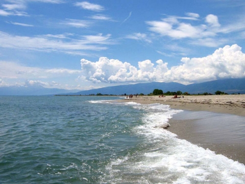 Αμμώδης ακτή, εκτείνεται σε μήκος αρκετών χιλιομέτρων με λεπτή, καθαρή άμμο και ρηχή θάλασσα. Βραβεύεται κάθε χρόνο με την γαλάζια σημαία της Ευρώπης και κατακλύζεται κάθε καλοκαίρι από πολύ μεγάλο αριθμό τουριστών. Η ακτή διαθέτει όλες τις απαραίτητες υποδομές, όπως χώρους άθλησης, πεζοδρόμους, πρόσβαση για τα άτομα με αναπηρία, χώρους πάρκινγκ, θαλάσσια σπορ, καθώς και ιατρείο.