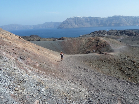 Πρέπει να ξέρετε ότι το καλοκαίρι η διαδρομή δεν είναι εύκολη, ειδικά εάν δεν είστε σε καλή φυσική κατάσταση. Το μονοπάτι είναι σε αρκετά σημεία ανηφορικό και το έδαφος σαθρό. Πάντως, η μεγαλειώδης θέα προς την Καλντέρα και τους οικισμούς της από όλα τα σημεία της νησίδας, θα σας αποζημιώσει για τον κόπο σας.