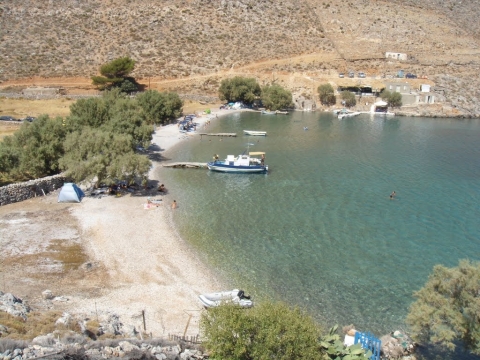 Βοτσαλωτή παραλία με πεντακάθαρα νερά στην ανατολική ακτή της Καλύμνου. Μπορείτε να την προσεγγίσετε από θαλάσσης με καΐκι ή οδικώς από τον νέο δρόμο των Σκαλίων προς το Παλιόνησο.