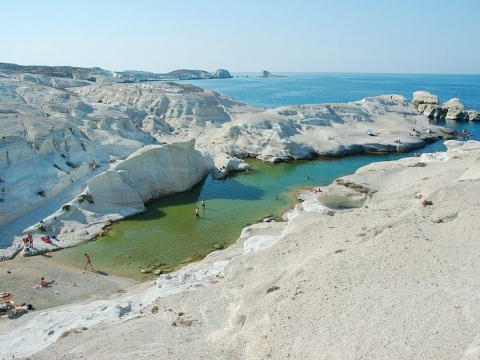 Είναι η πιο γνωστή παραλία της Μήλου. Κάτασπρα μακρόστενα πετρώματα απλώνονται μέσα και έξω από τη θάλασσα δημιουργώντας ένα σεληνιακό τοπίο. Ιδανική για όσους αγαπούν τις βουτιές. Δεν είναι οργανωμένη γι’αυτό θα πρέπει να έχετε μαζί σας τα απαραίτητα. Βρίσκεται στη βόρεια ακτή της Μήλου.