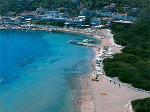 Η οργανωμένη παραλία της, μόλις 100 μ. από το λιμάνι, συγκεντρώνει τον περισσότερο κόσμο, πολλές οικογένειες επειδή η θάλασσα είναι ρηχή και προσφέρεται για παιδιά.