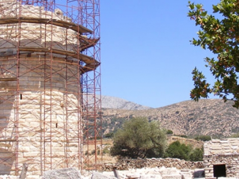 Το μνημείο χρονολογείται στα τέλη του 4ου π.Χ. αιώνα και αποτελεί ένα από τα σημαντικότερα της Νάξου, αφού θεωρείται εξαιρετικό δείγμα της αμυντικής αρχιτεκτονικής των ελληνιστικών χρόνων. Πρόκειται για ένα κυλινδρικό κτίσμα 4 ορόφων με συνολικό ύψος περίπου 20μ. και διάμετρο βάσης 9,2 μ. κατασκευασμένο από τεράστιους μαρμάρινους ογκόλιθους. Σήμερα διατηρείται το εξωτερικό του πύργου μέχρι το ύψος των 15μ., καθώς και λείψανα μικρότερων κτιρίων και του περιτειχίσματος που περιέβαλε το συγκρότημα.