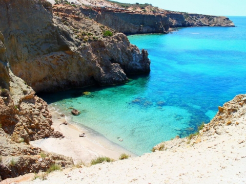 Η παραλία, αγκαλιασμένη από θεόρατα βράχια, έχει κάτασπρη άμμο και σμαραγδένια νερά. Η πρόσβαση σε αυτή την πραγματικά εξωτική παραλία γίνεται από έναν σχετικά εύκολο χωματόδρομο. Για να απολαύσετε όμως την ομορφιά της θα πρέπει να κατεβείτε από το ύψωμα μέσω ενός ίχνους απότομου μονοπατιού που είναι καλυμμένο με άμμο. Η παραλία δεν είναι οργανωμένη, αλλά μπορείτε να προμηθευτείτε τα απολύτως απαραίτητα από την κοντινή παραλία της Φυριπλάκας.